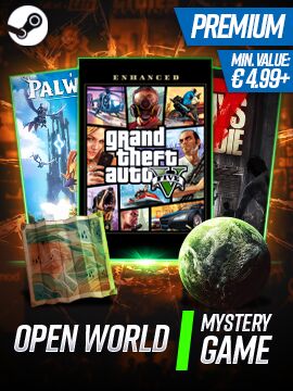 З Преміум Містичною Грою у Відкритому Світі ви гарантовано отримаєте гру з позначкою «Відкритий Світ» на Steam, яка має мінімальний бал 60 на Metacritic та в основному позитивні відгуки на Steam, а також роздрібну ціну на Steam у 4,99 євро.